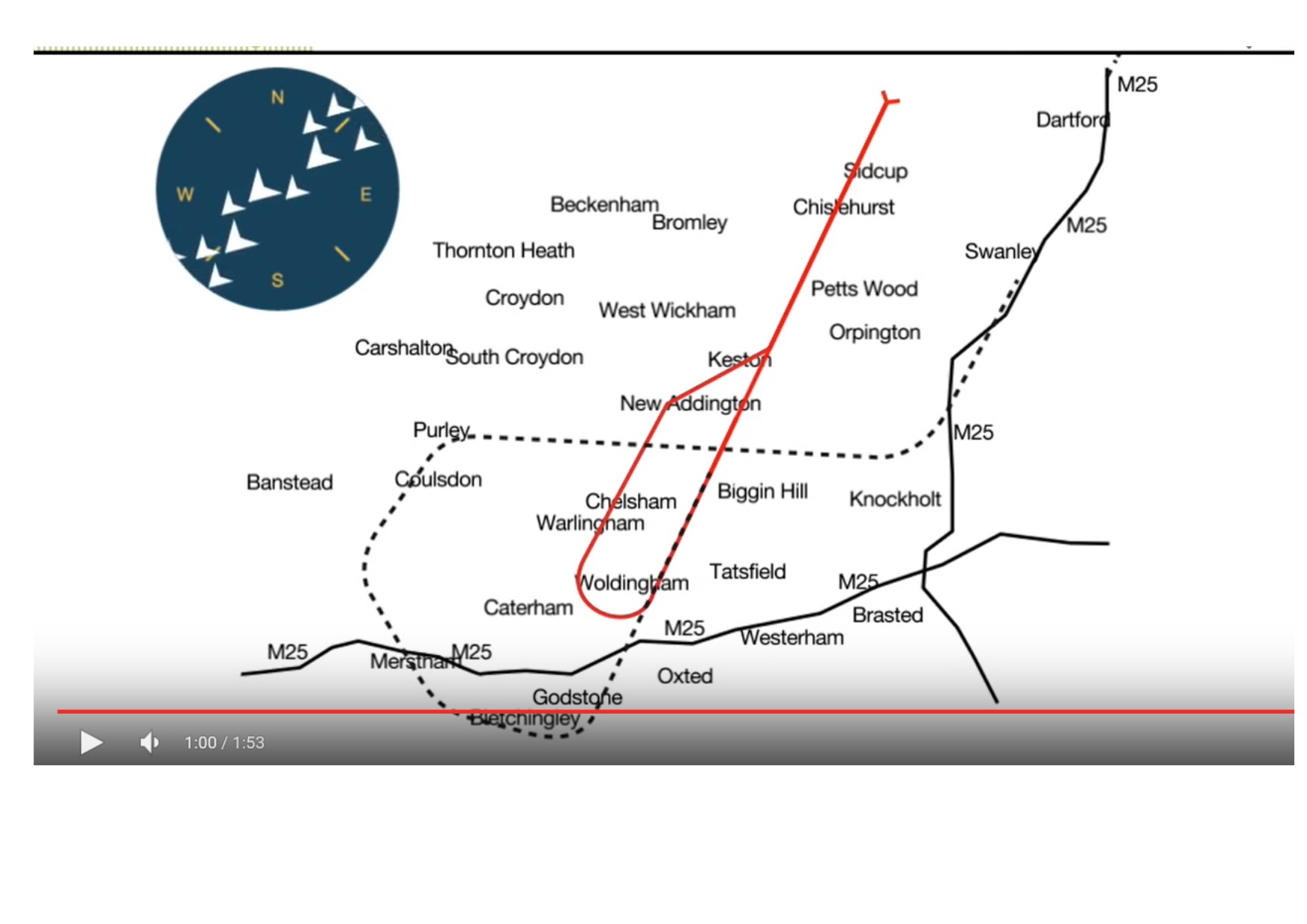 Biggin Hill Airport propose to install a new Instrument Approach Procedure (IAP) for aircraft approaching the airport to land from the south-west. The following images give an outline of the new landing flight path (in black dotted) compared to the existing (red). It is anticipated that the new flight path will be used for approximately one third of landings, when the wind direction is from the North.